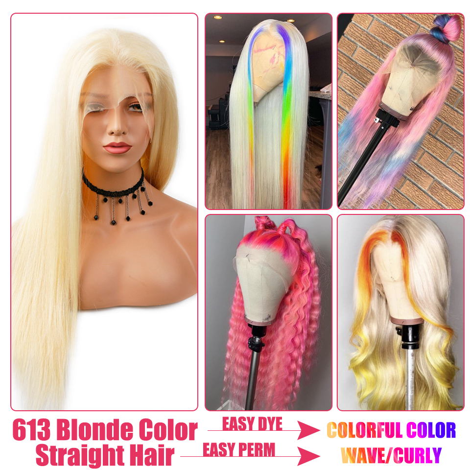 613 Lace Front Wig 200% 38" Brazilian Straight Human Hair Wigs Pre Plucked Remy 613 Blonde 13X4 Lace Frontal Wig Bleached Knots