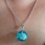 This necklace is ok, but in person the resin looks much more like plastic than glass. And the white parts are fine, but they don’t look like clouds. It does seem like an item that would vary with each piece, though.